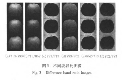 本文基于高光譜圖像對新疆紅富士蘋果果徑檢測進行了初步研究。采用大津法對852/713比值圖像做閾值分割,形態(tài)學閉運算去除果梗區(qū)域,基于8鄰接邊界跟蹤法得到蘋果區(qū)域的輪廓坐標,采用最小外接矩形法預測蘋果的大小。結果表明,利用雙波段比運算結合最小外接矩形法能夠準確預測蘋果大小,最大絕對誤差為3.06mm,均方根誤差為1.21mm。此外,雙波段比運算中選定的特征波長,為設計多光譜成像系統(tǒng)在線快速檢測蘋果大小提供了研究基礎。